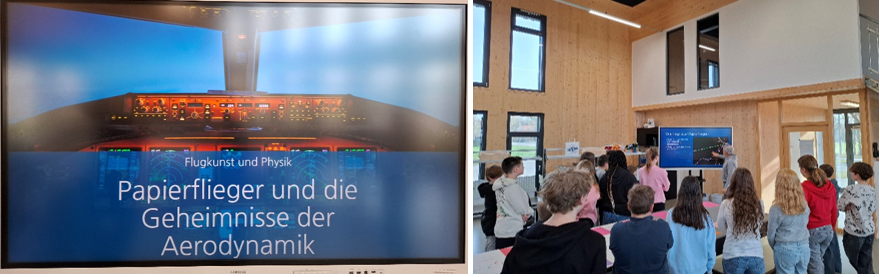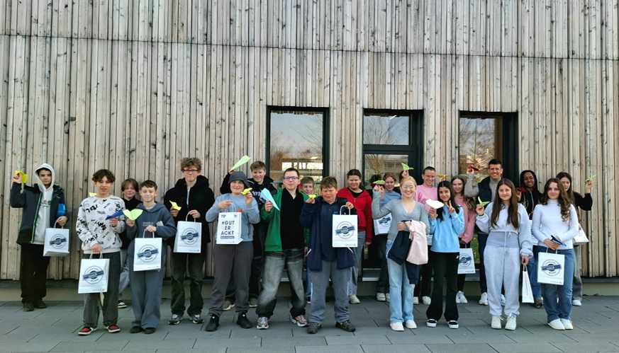Die Siebtklässler bekamen dabei einen Einblick in die Kunst des Fliegens. Mit viel Neugier und Engagement stellten die Schülerinnen und Schüler verschiedene Papierflieger nach Anleitung her. Dabei war Geschick und Genauigkeit gefragt, denn die Modelle waren nicht immer einfach zu falten. Besonders spannend wurde es, als die fertigen Flugobjekte getestet wurden: Welcher Papierflieger gleitet am weitesten? Welches Modell fliegt am schönsten?