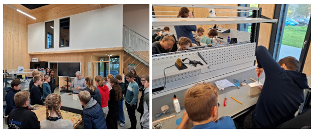 Die Siebtklässler bauten eine Seifenblasenmaschine. Dabei durften die Jugendlichen unter anderem messen, bohren, leimen, schrauben und löten. Die Schülerinnen und Schüler hatten jede Menge Freude bei der Arbeit und kommen gerne wieder in den Technologiecampus, um weitere Kurse zu besuchen und dabei einiges dazuzulernen und in der Praxis zu erproben. Natürlich wurden die Seifenblasenmaschinen im Anschluss auch getestet und für gut empfunden. Einen herzlichen Dank an Peter Kluck für die tolle Betreuung vor Ort!
